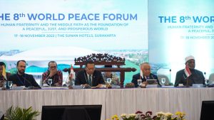 Surakarta – Forum perdamaian dunia, World Peace Forum 8 resmi digelar hari ini, Kamis (17/11) di Hotel Sunan Surakarta, Jawa Tengah. Sebanyak 70 peserta lintas agama dari 20 negara akan berdiskusi dan mencari solusi soal persaudaraan antar umat manusia dan dunia yang damai sampai hari Jumat (18/11/22).